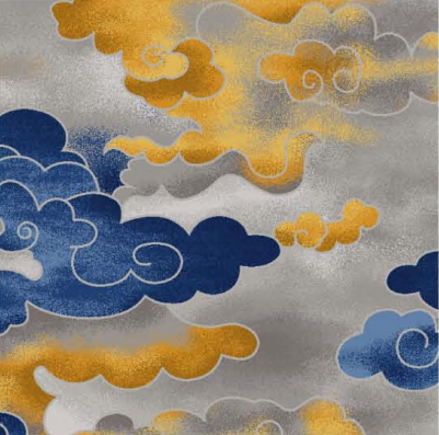 HT-1200-03 gây thu hút nhờ vào họa tiết đám mây nghệ thuật mang hình khối, những đường viền mềm mại gợi liên tưởng đến bầu trời cao rộng. Gam màu được điều tiết khéo léo với xanh navy – cam vàng kim – ghi nhẹ, táo bạo nhưng vẫn đảm bảo sự hài hòa.