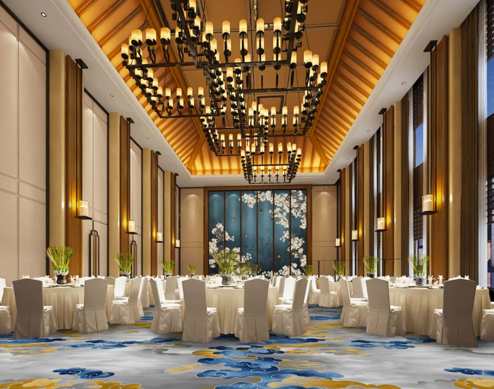 Thảm trải sàn khách sạn HT-1200-03 thuộc BST thảm cao cấp dành riêng cho các công trình khách sạn cao cấp, trung tâm hội nghi, resort và những không gian yêu cầu cao về thẩm mỹ. Thiết kế lấy cảm hứng từ đám mây nghệ thuật trên nền xanh thẩm – vàng kim – ghi trung tính, gây ấn tượng ngay từ cái nhìn đầu tiên.